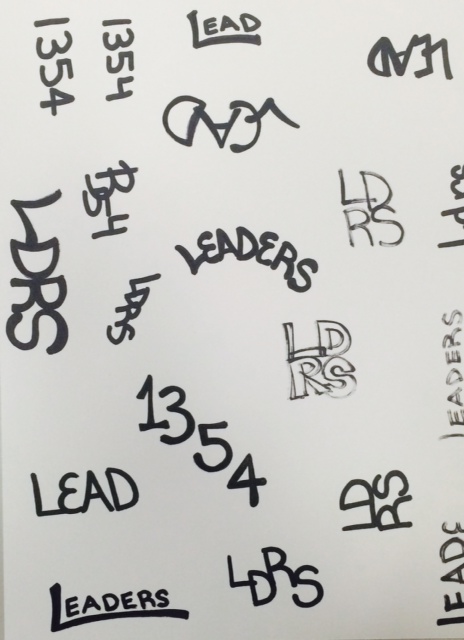 Then I took the images and digitized them using adobe illustrator to allow for optimal screen printing quality. In Illustrator I was able to best arrange the faces together. I then wrote “Lead” “Leaders” “LDRS” and “1354” in many fonts using oil based paint marker to solidify that this piece is made for Leaders. Some of my fonts ended up on patches, one ended up on the final design of the t-shirt.